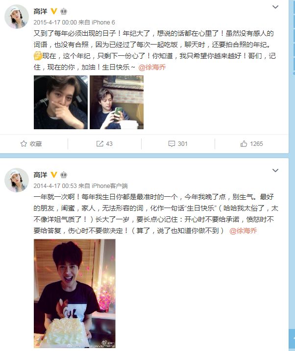 这是最近的一次,还被网友发现了,基本上每年乔叔生日的时候都会帮乔叔过生日哦。但最近两年好像没有在微博互动过了。
