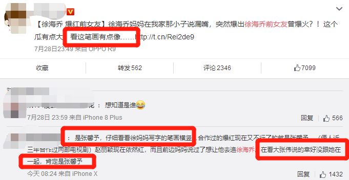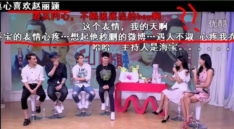 所以这个女明星是谁呢?只能确定跟徐海乔合作过。有人根据“红得一塌糊涂”,猜是合作过《花千骨》的赵丽颖。