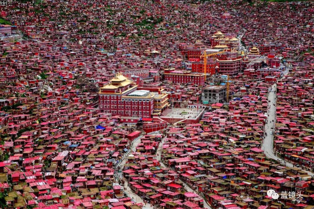 色达佛学院:全称是色达县喇荣寺五明佛学院,误称是五明佛学院(很多大寺庙都有五明佛学院):坐落在四川省甘孜藏族自治州色达县境县城东南方约20公里处,海拔4000米上。在重重的群山环绕之中,沟里的僧舍,以佛学院的大经堂为中心,密密麻麻搭满了四面的山坡,不计其数的绛红色小木屋,延绵无数,一眼望不到头。这些红色小木屋,是一万多名僧侣的住所(出家男子称扎巴,出家女子称觉姆即女尊者)。它与亚青寺都是位列前茅的大型寺庙。