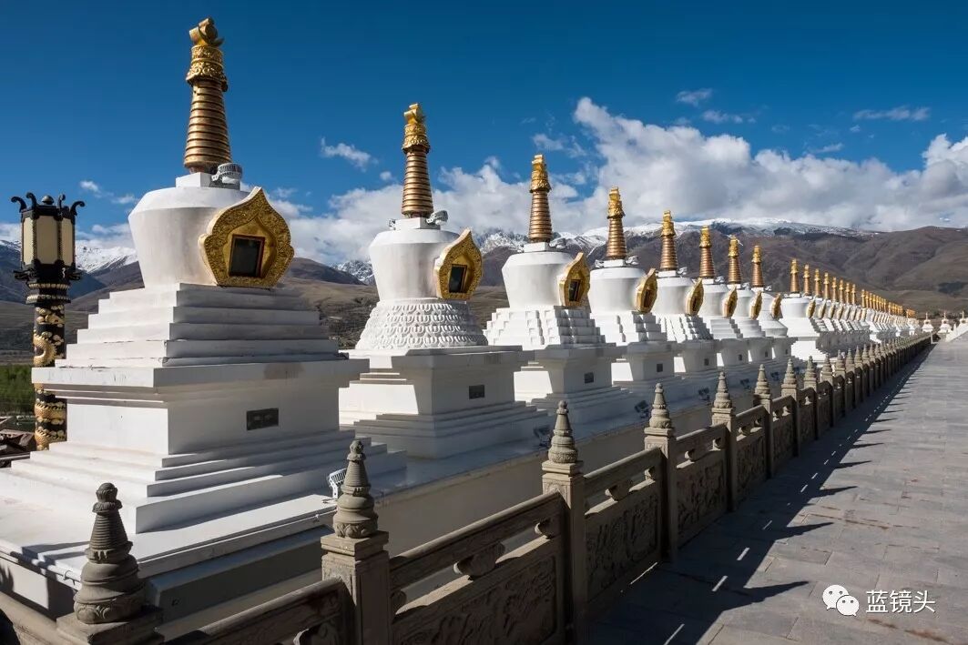 惠远寺,藏名为“嘎达向巴林”, 海拔3500米,系道孚县境内藏传佛教格鲁派寺庙中较古老寺庙之一。惠远寺外门分列两行的这些白塔,名为千菩提塔,又称善愿塔,每个塔代表信众的一个善良愿望,也就是歌子里唱的那“心有千千结,人有千千愿”的塔。由于七世达赖曾驻锡于此,复为十一世达赖降生之地,其声誉不但遍及整个康巴,而且远扬于西藏。
