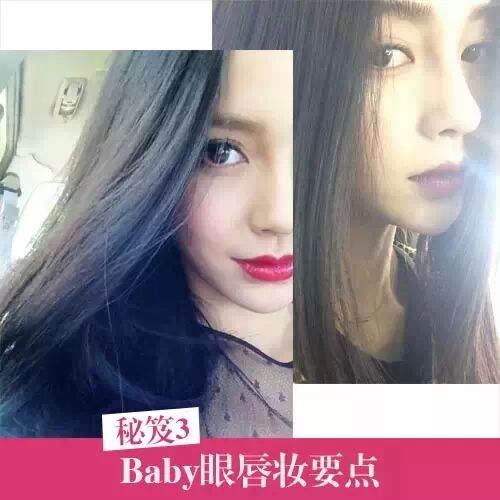 其实Baby大部分的自拍都是遵循“眼妆重,唇妆淡”的原则,不过翻看她过往的自拍,简约的眼妆无论是搭配紫红雾面唇还是桃红色润光唇的CP值都很高,如果有色彩很正的唇彩,妹纸自拍时不妨要眼妆让一让位。