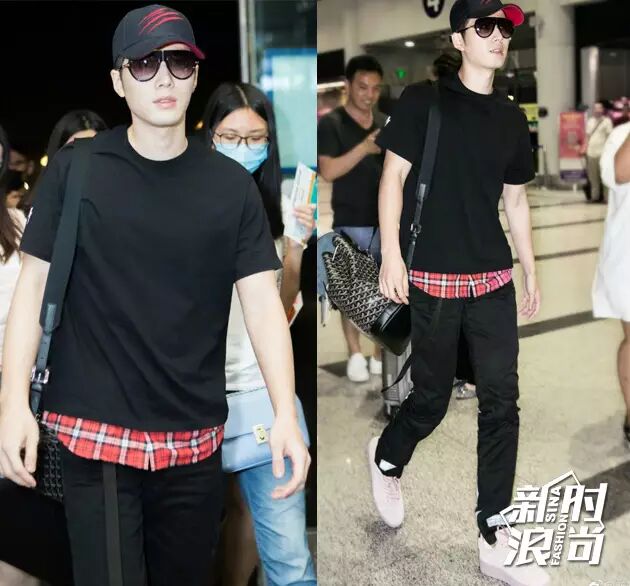 三生三世里拉得一手好面的杨洋,在机场的街拍中也凹得一身好造型。