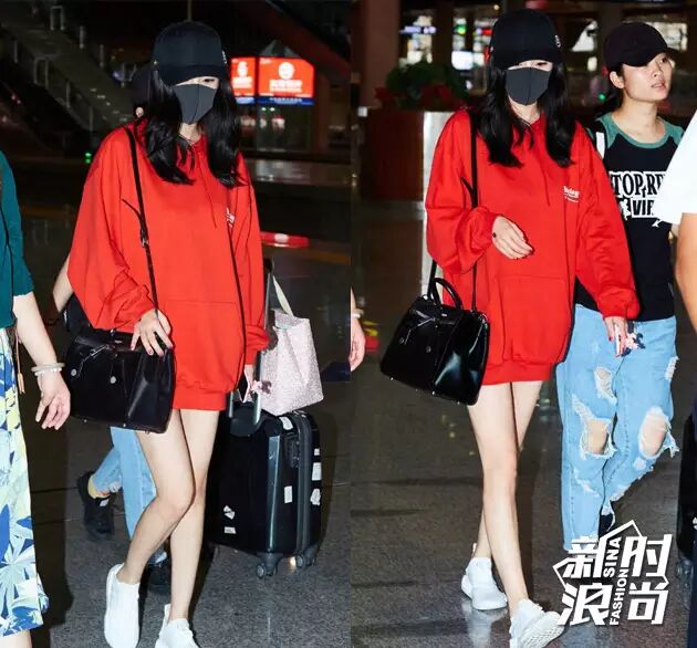 说完了杨洋,我们看看带货女王杨幂,7月的某一天杨幂身穿Balenciaga卫衣、搭配MOSCHINO B-Pocket背包现身机场,任性秀长腿,风格鲜明之余彰显时髦高街潮范。其实杨幂通过机场街拍给了我们很多穿衣建议,比如这身吧,大廓型的一件式外衣,在防晒的同时也起到了短裙的效果,收放自如,姑娘们不如学起来。