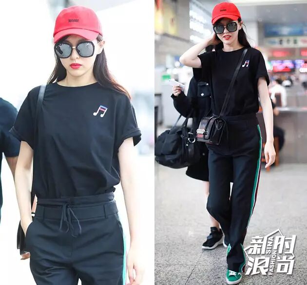 长腿女神唐嫣 又双叒叕到机场大秀美腿。音符印花的黑色T恤搭配“校服”长裤,唐嫣#这一身黑色的运动风搭配时髦又有型。而女神搭配的红色棒球帽俏皮抢镜,暴露了糖糖满满的少女心。