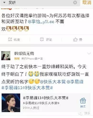 第二:宣布主权。何炅问李易峰为何将吴昕拉到自己这边,李易峰答:她是我的。