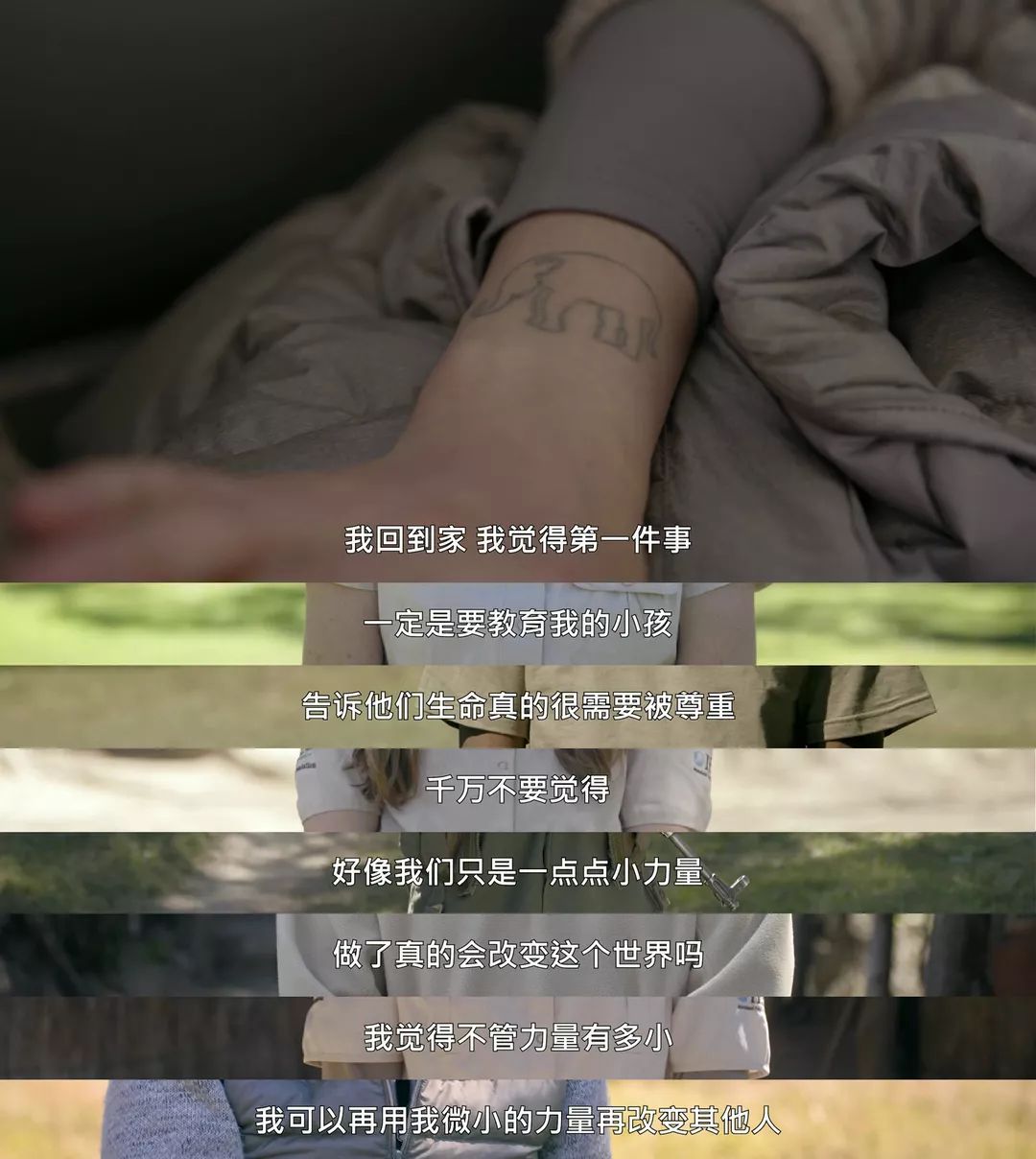 阿雅一直吃素纪念父亲的离世,更是因为不忍心看到动物被宰杀的痛苦,她参与过很多关于动物保护的公益,因而我们会看到《奇遇人生》里小S、阿雅深入非洲腹地因为遭遇残忍盗猎而流泪。