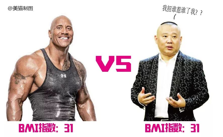 (两人BMI一样指数,但是左边的巨石·强生就比郭德纲,看上去拥有更完美的身材)