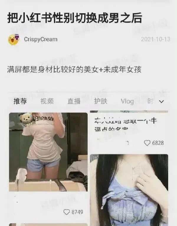其实此前就有人发现,如果把自己的小红书账号性别切换成男性,推荐的内容立刻就变了。