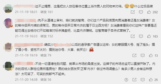 用网友的话说,就是:“买是女人买,但穿是为了给男人穿,出于这种价值观才会做出这种广告。”