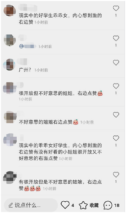 光是在一个女孩拍摄自己写作业的视频下方,就有许多不堪入目的评论: