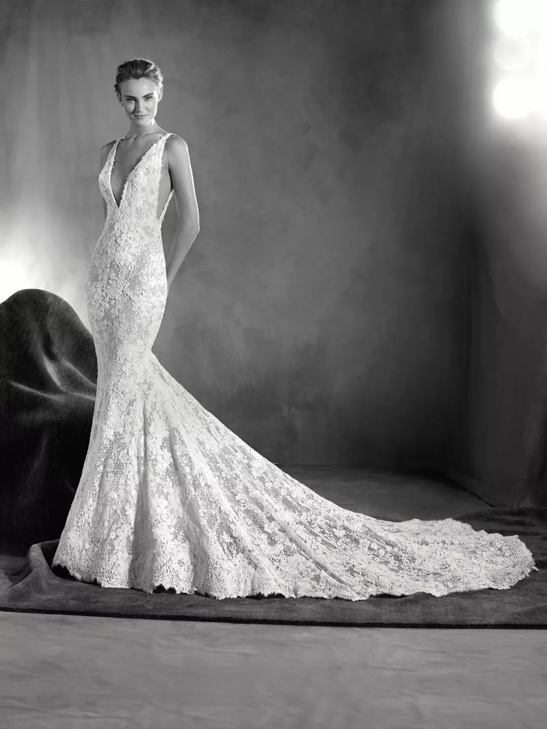 一直以来,深v都是各大婚纱设计师灵感list上的常客,独特的设计,最大程度的彰显了女性的性感风韵。无论是你平胸与否,都可以展现不同的魅力。这种友好的设计还修饰了脸型,在视觉上拉长脖颈,令人眼前一亮。再配上浪漫洋溢的小鱼尾设计,更显玲珑身段。
