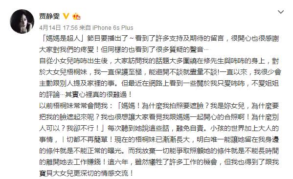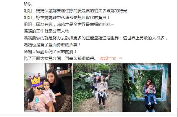 难道是因为大女儿是和前夫生的,而小女儿是和现任老公生的,所以她对小女儿的疼爱就要多于大女儿?答案当然是No!面对这些传闻贾静雯在微博写到: