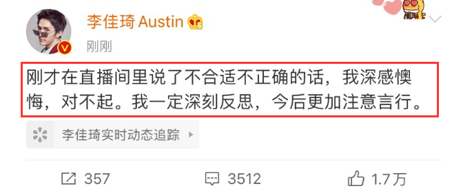 直播结束后,李佳琦就赶紧在凌晨发了一个道歉微博。