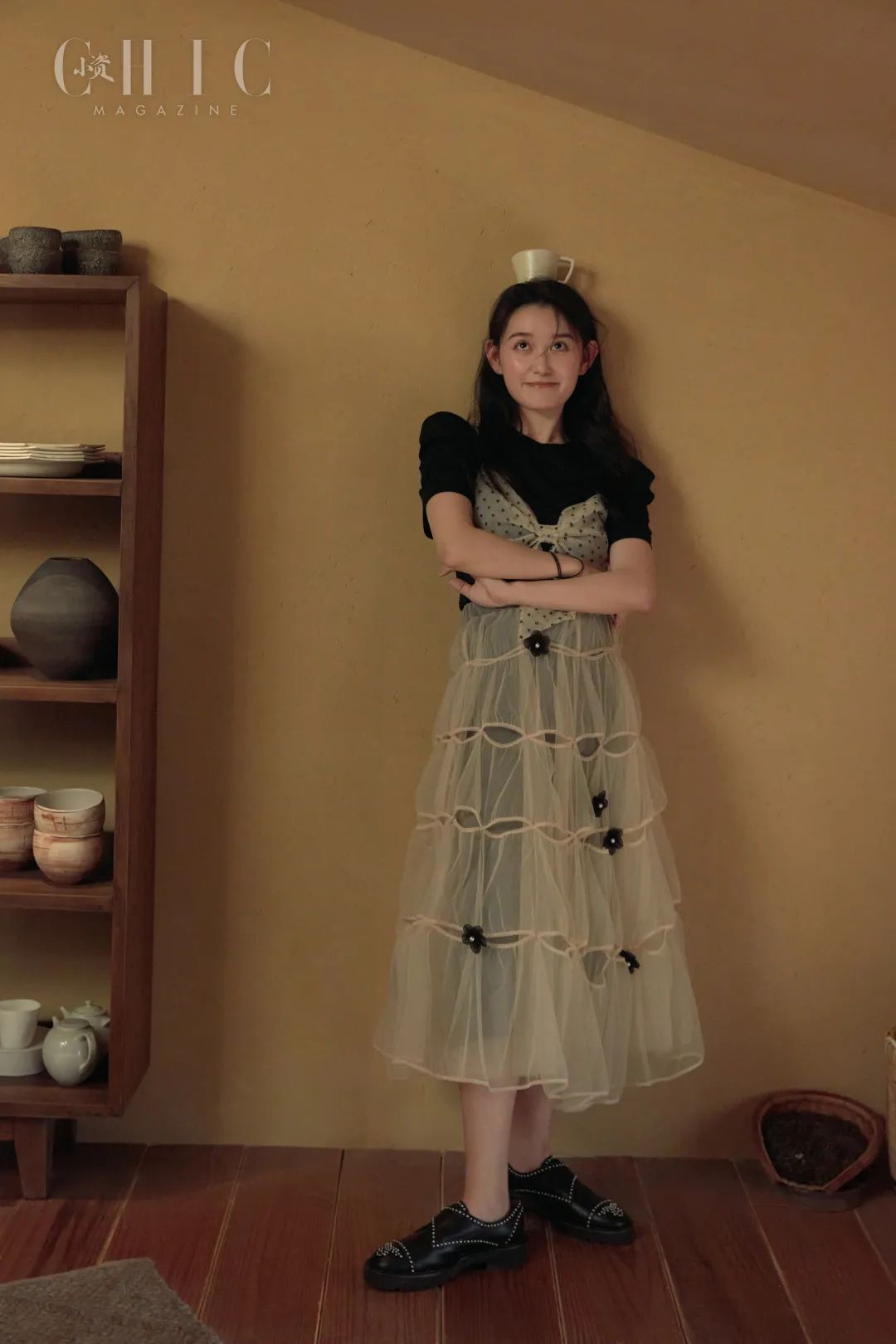 当柔和网纱和黑色相碰撞,整体穿搭更有层次感,也多了几分浪漫。