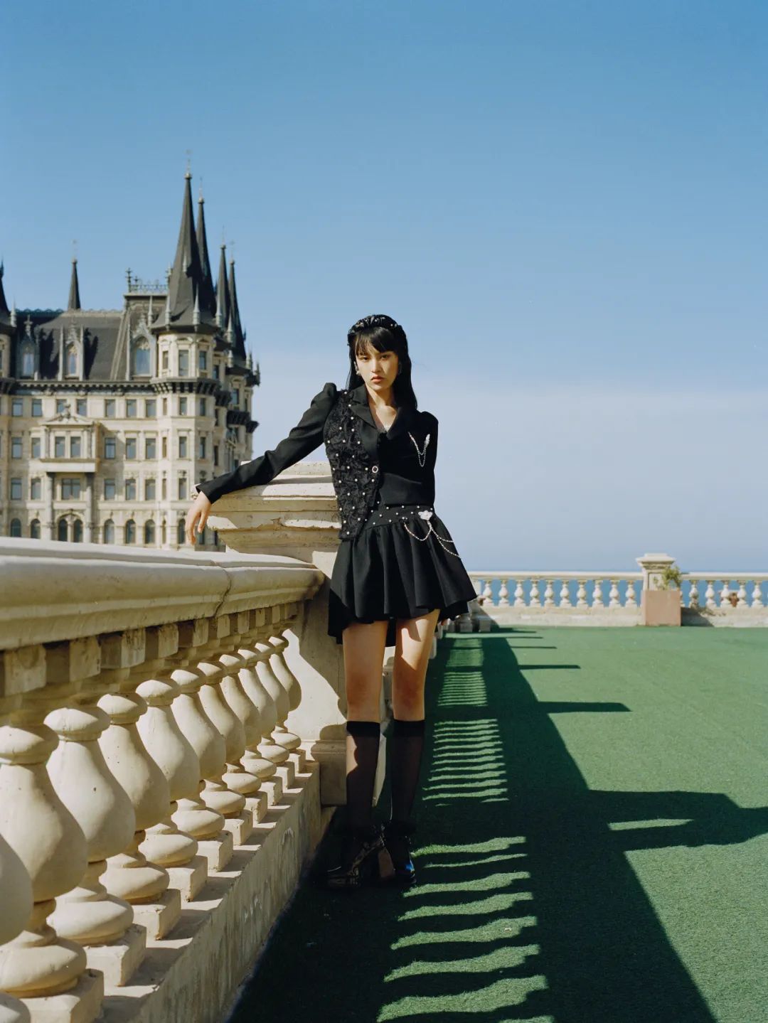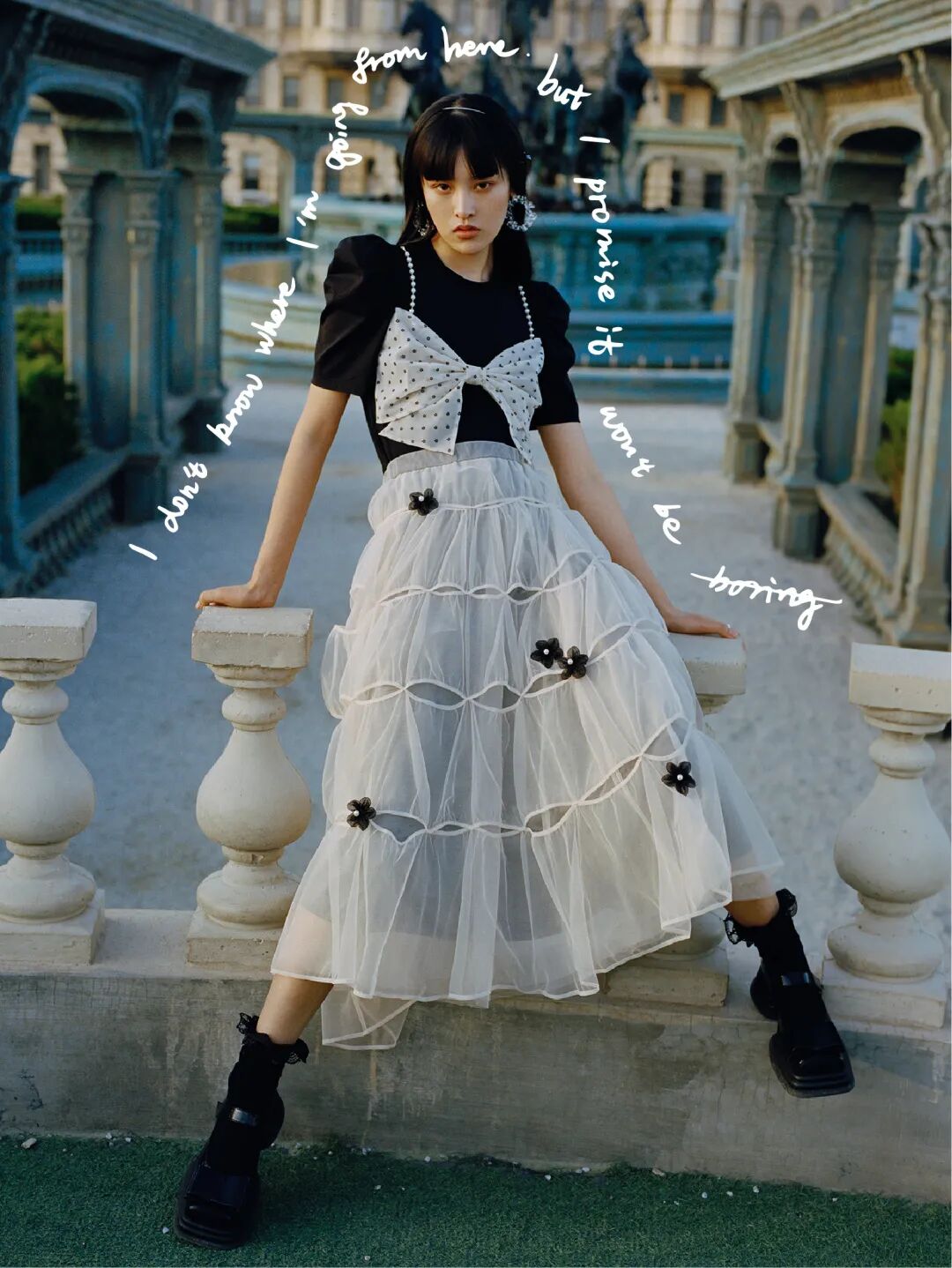 明明都是简单的黑白配色,她穿起来却像甜酷叛逆的公主。