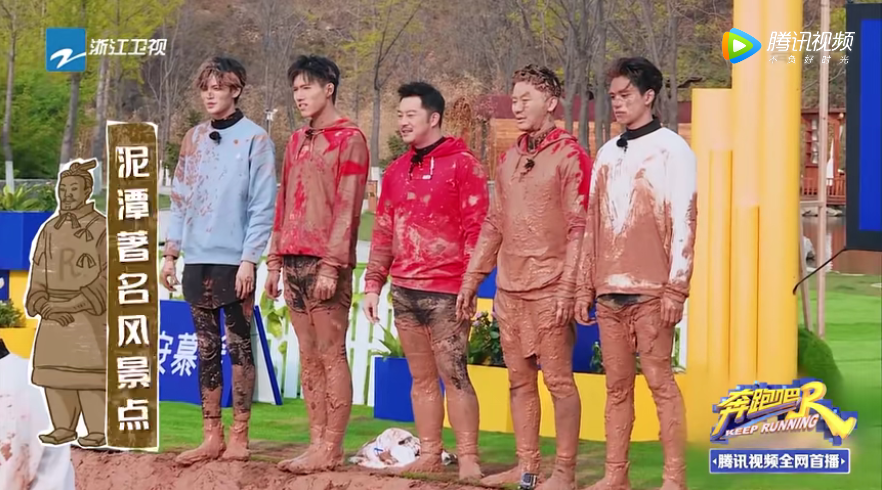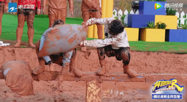 原本,这个游戏玩得挺开心,队员们轮流掉落泥潭,也是笑点满满。
