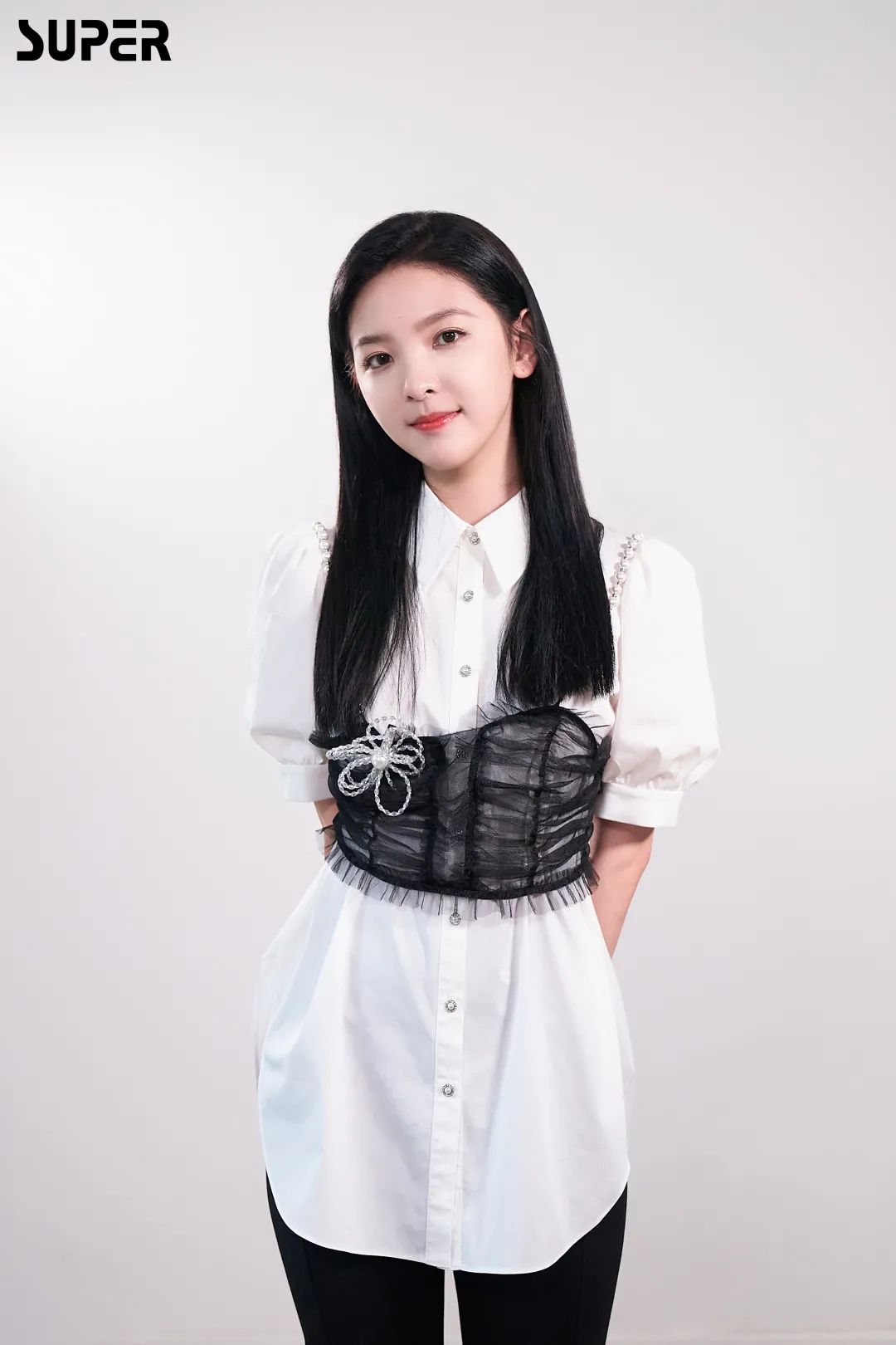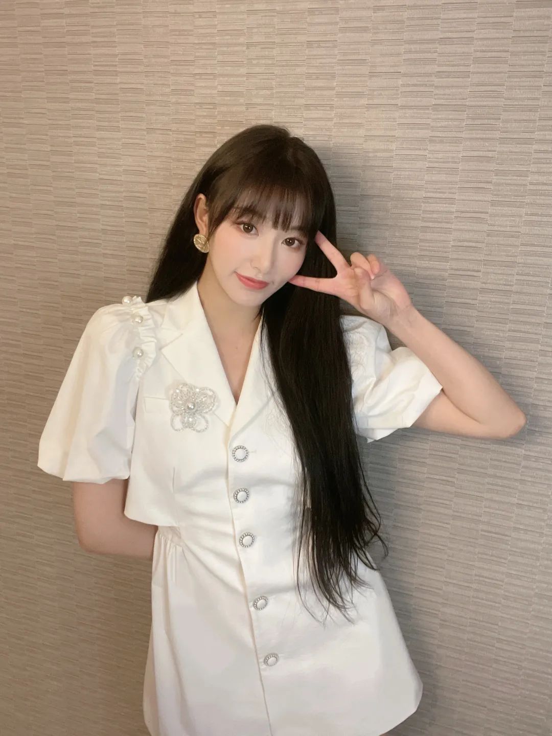 曾可妮的气质偏清冷,再穿上干净简洁的白色西装,就是又A又酷的漂亮姐姐。