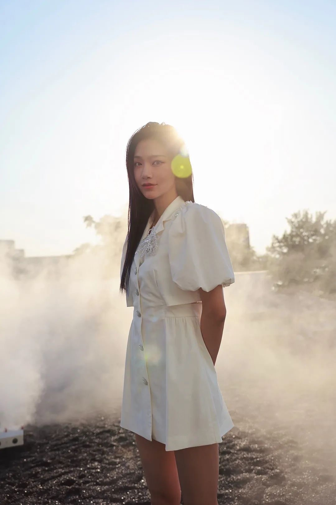 她的妆容跟周洁琼不同,同样的穿搭在她身上,反而有夏日气息。