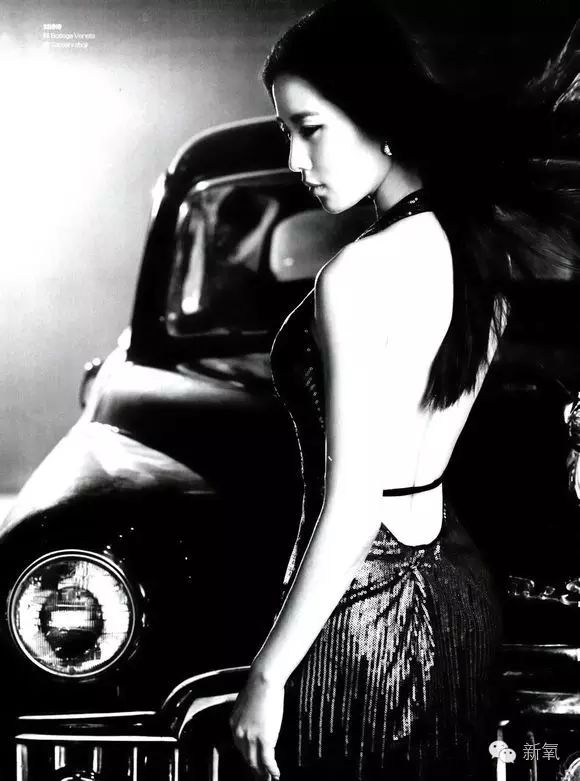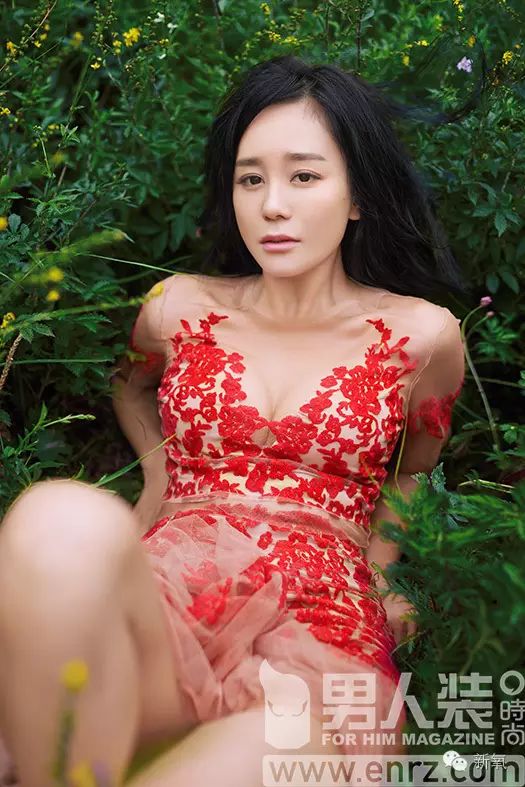 一向清雅的诗诗,2012年的时候,拍过一组男人装封面,蕾丝大露背。