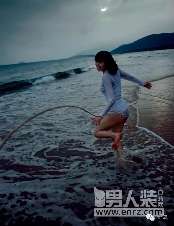 王子文,一个在海边喝口服液的妹子。