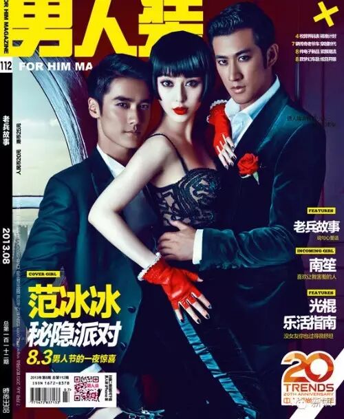 2013年范爷当封面的某期《男人装》,右下角有个好熟悉的网红名。