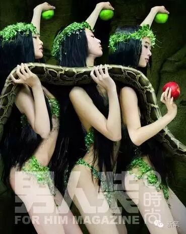 这是《男人装》2007年的年度首刊。这组照片,叫“蛇的夏娃”。