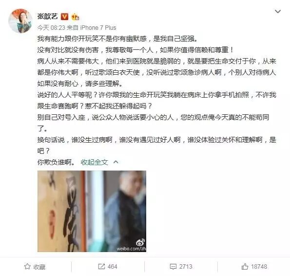 小懂昨天在热搜看到这么一个话题——张歆艺发文斥责医生。