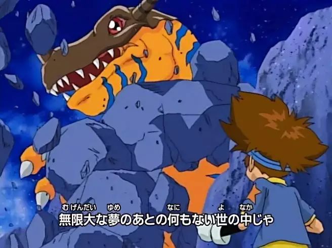 第四部《数码宝贝无限地带》的OP《FIRE!!》中有一句歌词:“飞越垃圾箱的未来”