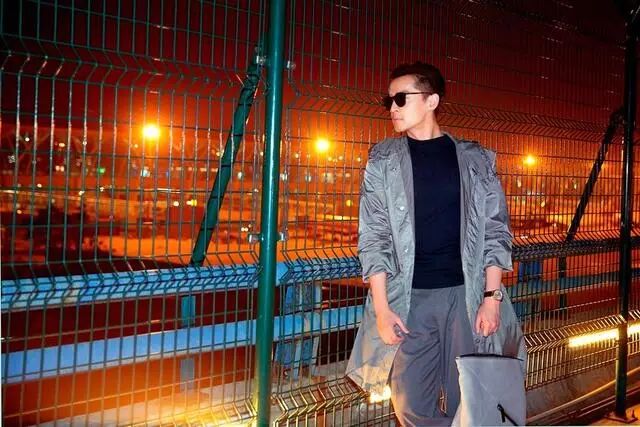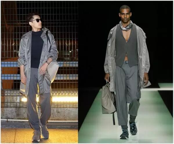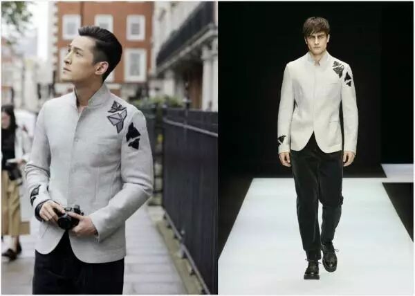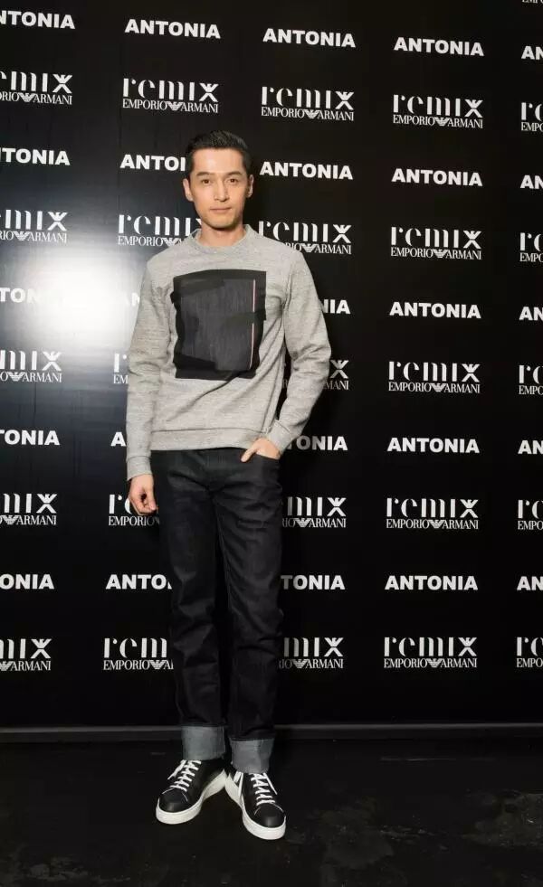 ▲ 一身Emporio Armani 2016秋冬系列灰色休闲上衣(新品未上市)搭配牛仔裤出席的胡歌