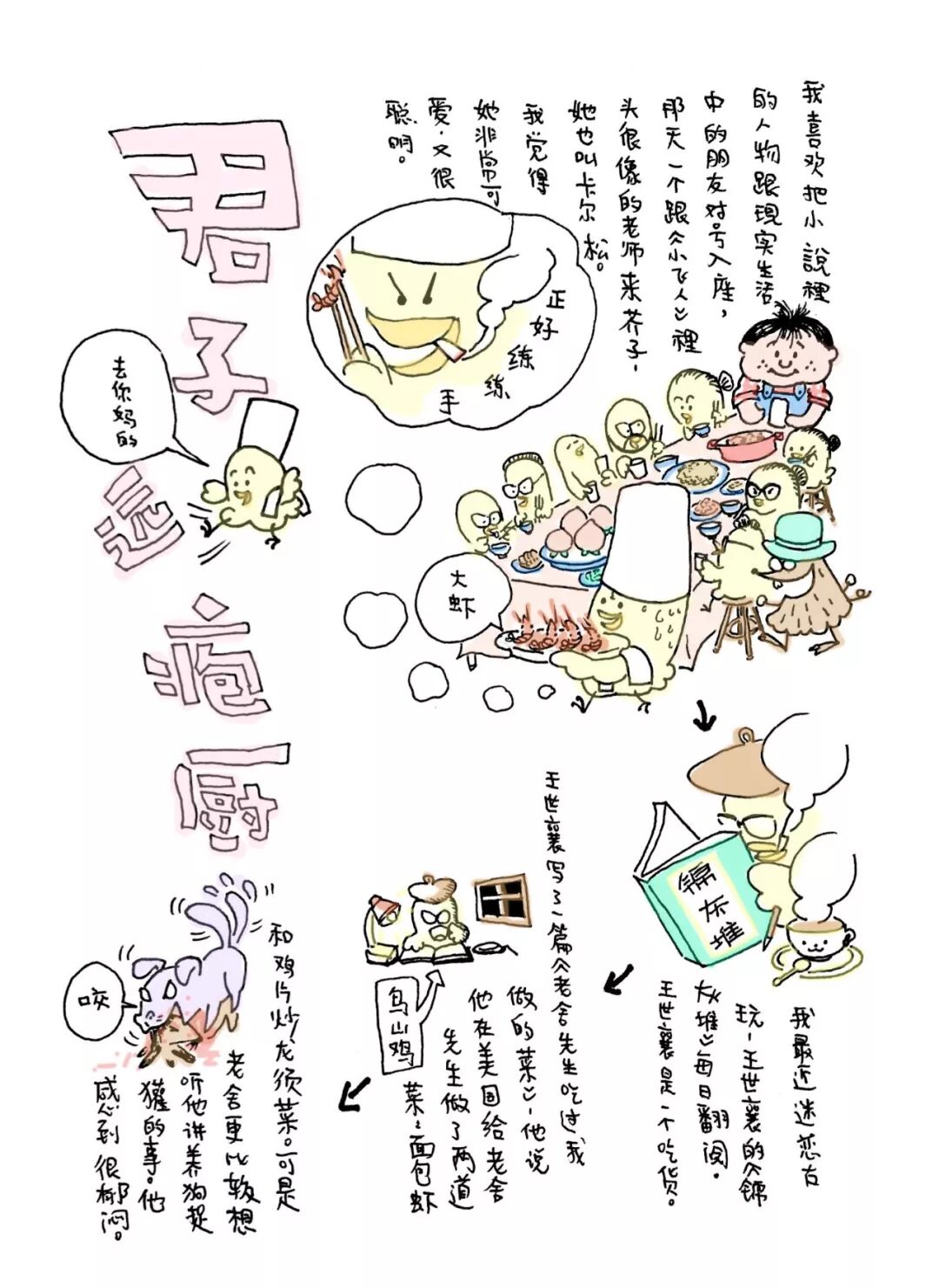 他后来把我们都画到漫画中去了(每个人都画得很像)。
