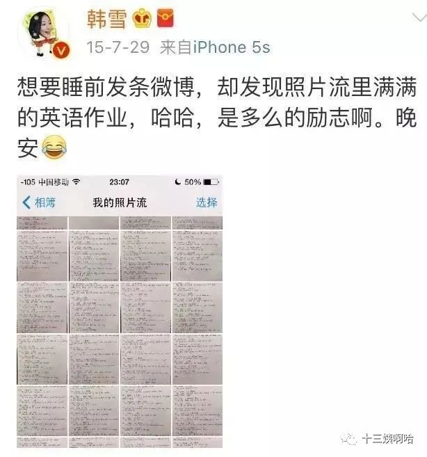 对于惊艳众人的英语,是韩雪自学三年,每天三小时换来的成果。