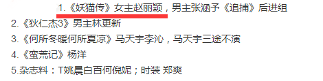 这两天,网上爆赵丽颖将出演电影《妖猫传》,搭档影帝级演员张涵予。