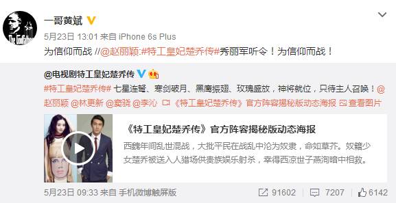 而黄斌的微博已经开始密集宣传赵丽颖新戏,为了将“小骨”事业推向新高度可谓不遗余力。