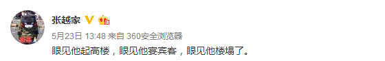 但这才过去几天,友谊的小船不但翻了,还翻了个底儿朝天!他的一番“楼塌”言论,让不少网友都化身为知心大姐姐,一人一句“好聚好散,感谢陪伴”,把张越家说的也是没脾气。