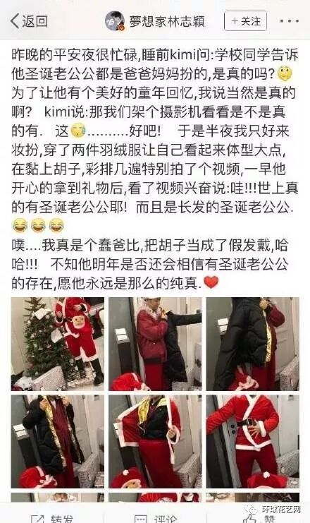 圣诞节扮作圣诞老人的还有林志颖哟,不过人家是为了让儿子相信世界上真的有圣诞老人,不过却被儿子吐槽圣诞老人还长头发?原来是他错把胡子当头发,真是个蠢爸比~