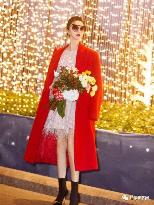 红和银都是经典的圣诞色,范冰冰这组街拍身着红色大衣气场全开,再配上圣诞气息浓厚的花束,简直美呆了!