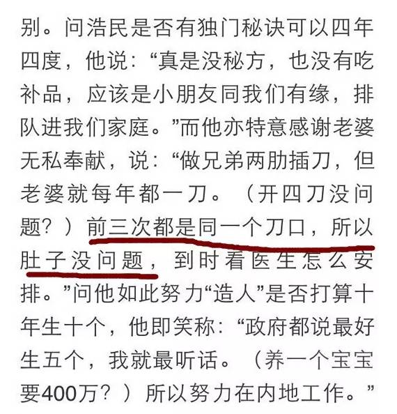 而且蒋丽莎四次都是剖腹产,而且是在同一个伤口上~不知道是怎么挺过来的。。陈浩民你倒是真心心疼下这个为你辛辛苦苦生下四个孩子的女人!