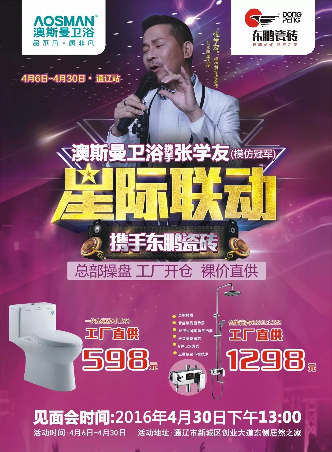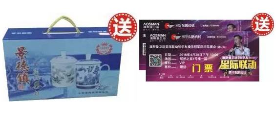 活动期间,凡在朋友圈连续5天带图分享澳斯曼卫浴、东鹏瓷砖星际联动活动信息,凭朋友圈截图,前100名可领取景德镇高档茶杯一套和明星见面会门票,先分享先得。