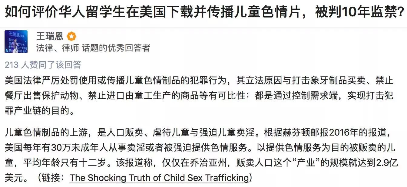 即使华人在美国下载传播儿童色情片,也只是被判处1年有期徒刑,缓刑9年,再减去审判之前在看守所的时间,遣返回国之前,罪犯也就坐牢几个月。
