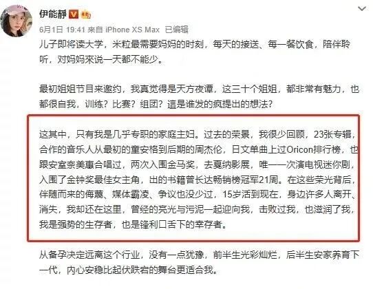 好好的综艺,本来就是一群中年女人的重新组团,伊能静倒是有股浓浓的小妈味。