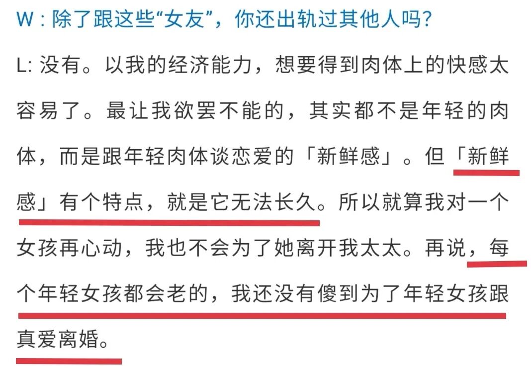 他频繁出轨且不断更换女朋友,还自诩对老婆深情,