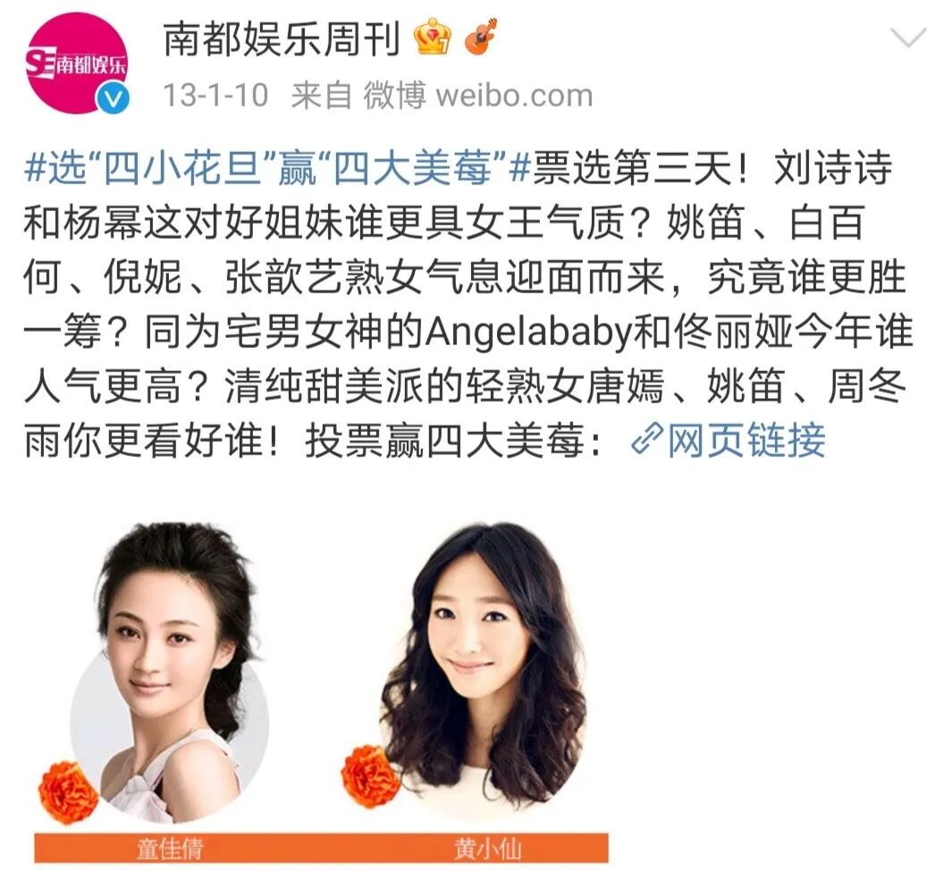 在当年南都娱乐周刊的评选中成为“四小花旦”的候选人,与倪妮周冬雨齐名。