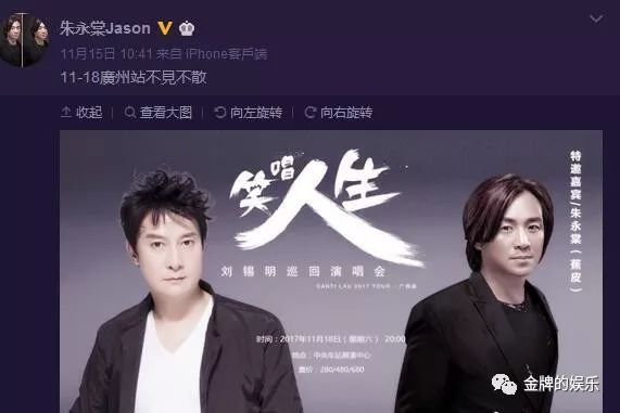 在今天,朱永棠发微博,表示在这个月刘锡明的广州演唱会上,自己会以特邀嘉宾的 身份出场,但是可以这条微博下面的评论却是非常的少,评论量和转发量寥寥无几。在消息刚出的时候,还有一些老歌迷纷纷积极响应,但是现在已经慢慢的趋于冷清了,购票链接也已经失效了。