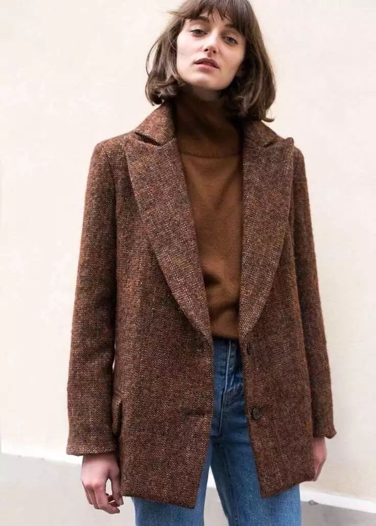 西装外套在今年格外的火热,几乎人手一件,内搭的选择不妨可以搭配高领衫,提升气质又凸显高级。