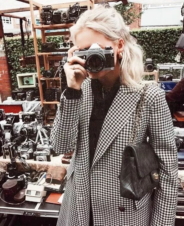 尤其推荐纸袋阔腿裤,腰部的设计使得整体造型不那么单调,而且还拉长腿部线条。担心造型过于简单的话,可以在款式和配饰上花点小心思,可以起到画龙点睛的作用。比如这种带有金色小纽扣的款式就很别致。