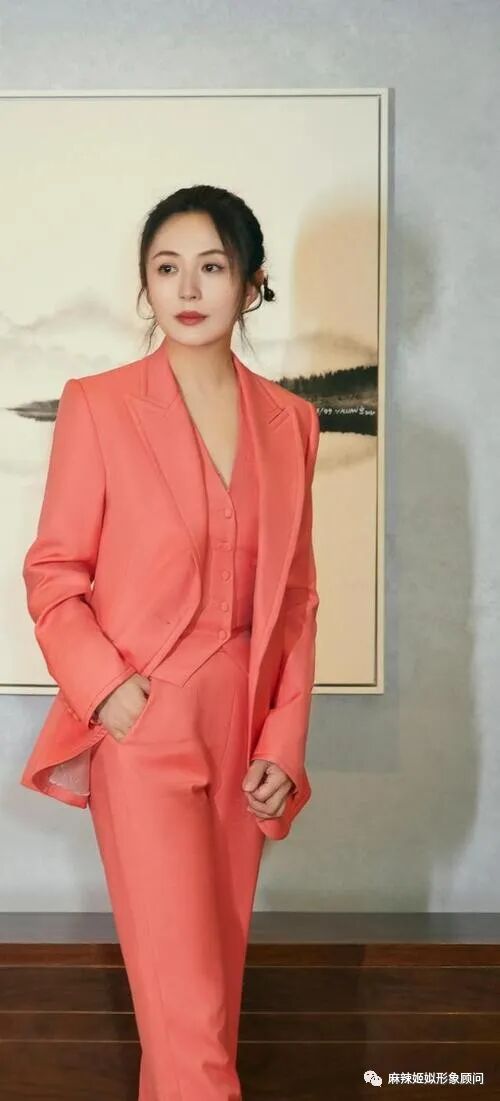 杨童舒在整体穿搭中,直曲的把握度是做得挺好的,只是她在整体造型中,依然是有很需要精进的地方,看看下图的造型,发型妆容服饰都挺适合,是不是显得杨童舒既有气质也有女人味?身材比例也被适合的服饰结构,衬得既有曲线美也有苗条感。只是不适合的发色,眉色,阴影色跟唇色,还是显得杨童舒脸上有点浮肿感,同时也显得她脸部扁平,气色也没有那么好。