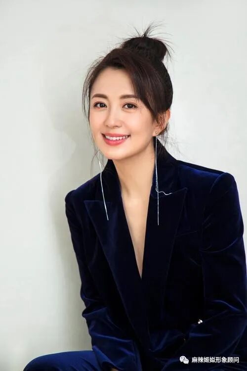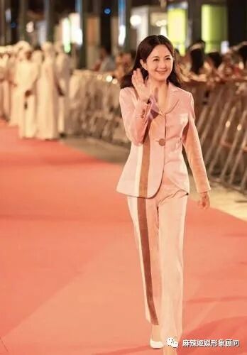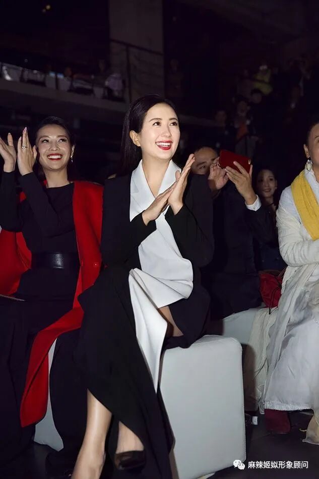 杨童舒虽然在用色上,经常会出现问题,看看下图,发型妆容手法跟服饰都挺适合,衬得杨童舒既优雅又有女人味,既有气场也有气势,身材比例,在适合的服饰结构的衬托下,是不是不仅曲线美跟苗条感兼有,同时身高优势也很明显?只是不适合的发色,眉色眼影色跟阴影色还有唇色,还是显得杨童舒的脸部有岁月的痕迹,脸还是有点浮肿。