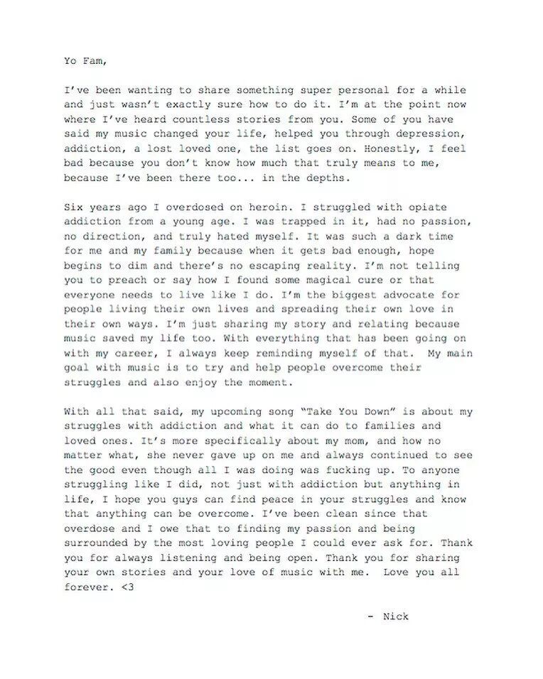 就在今天,你们都爱的凤凰男Illenium迈出了职业生涯的一大步,向全世界传达了他的苦痛以及过去和药物成瘾相抗争的故事。根据他所说,六年前他便有用药的习惯,之后他更是和Opiate抗争了多年。他将一切感悟融入了即将在周五发布的新歌中,期待一下吧,别忘记生活之余关心一下周围的人。