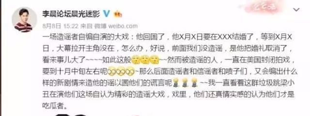 之前有人爆料八月份范冰冰和李晨会举行婚礼,李晨粉丝迅速出面辟谣,称是有人造谣,当时李晨方的反应就被质疑是想撇清和范冰冰的关系,要和她做切割。