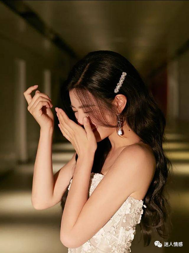 陈妍希穿着一袭白色抹胸的深V长裙,耳朵戴着钻石首饰,她俏脸成熟妩媚,双目紧闭,眉清目秀,烈焰红唇,大秀自己傲人的事业线,太美艳绝伦了!